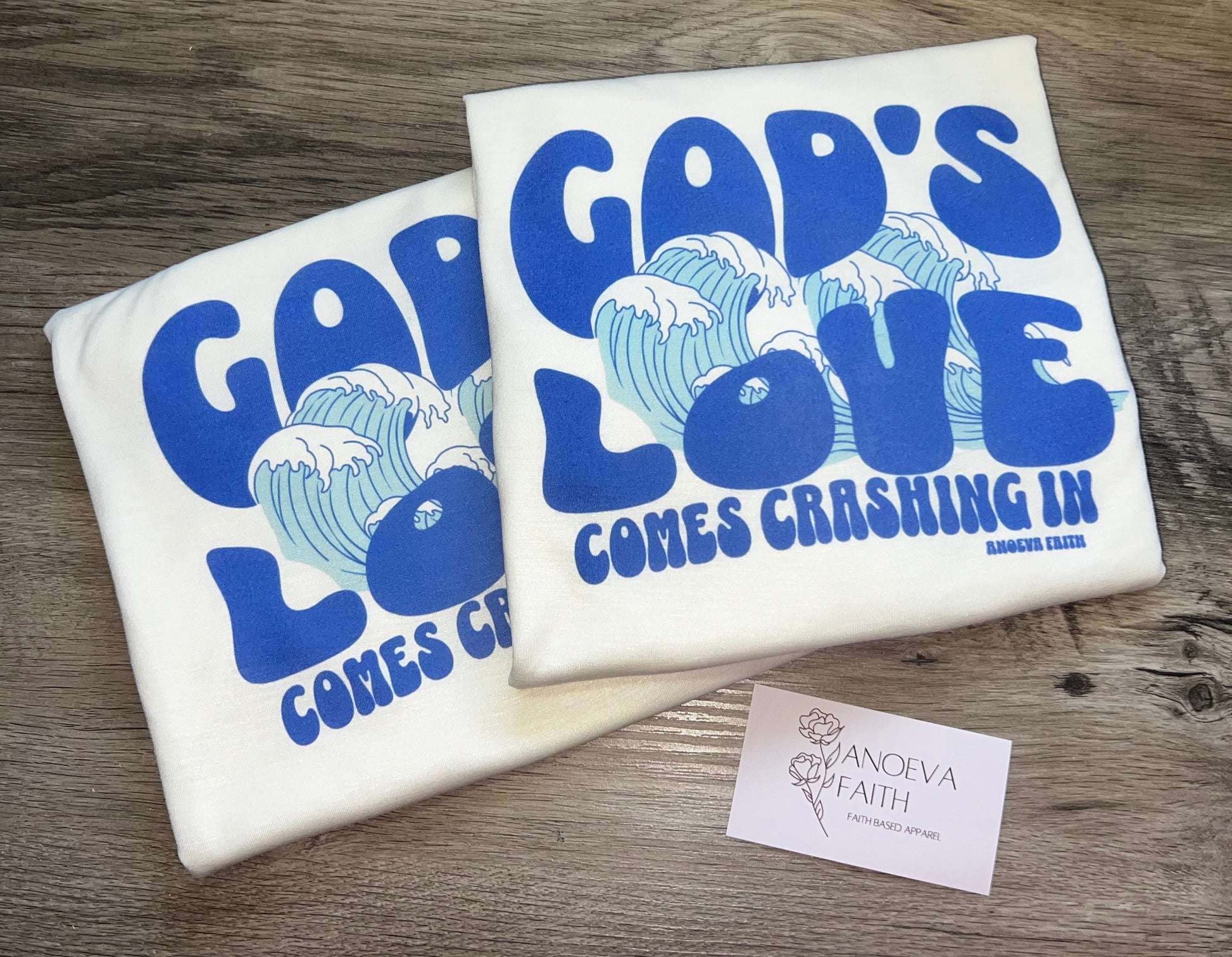 Crafted with a high-quality polyester blend for optimal sublimation, this shirt captures the essence of God's love in a sleek and stylish way. Experience the overwhelming embrace of God's love with this unique design.